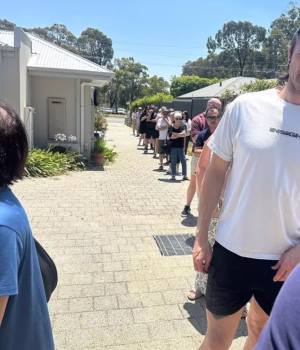 A dupla de propriedades Perth, gerenciada por Lisa Kwan e Ray D’Costa da Agência, compartilhou uma foto (foto) da fila para uma visita pública.