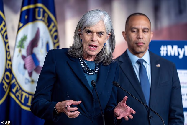 A deputada Katherine Clark, D-Mass., House Minority Whip, junta-se ao líder da minoria na Câmara, Hakeem Jeffries, DN.Y., em uma coletiva de imprensa sobre a paralisação do governo para discutir como a crise pode afetar os cuidados de saúde na quarta-feira, 22 de outubro, no Capitólio em Washington, D.C.