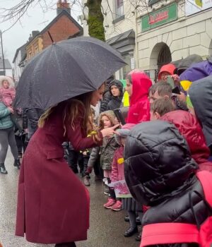 “Esses são momentos que as crianças contarão aos amigos durante anos – com orgulho e entusiasmo – e levarão consigo para o resto da vida”, escreveu um usuário do X, compartilhando uma foto de Kate abraçando uma garota durante uma caminhada separada em Newtown.
