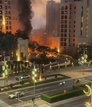 À medida que imagens de explosões, ataques de drones e prisões começaram a circular, a narrativa começou a desmoronar. Imagem do Palm Jumeirah Hotel em Dubai