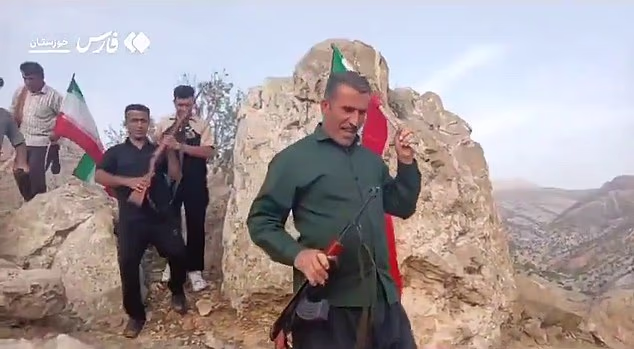 Isto levou grupos desorganizados de pastores de cabras e agricultores a pegarem em armas improvisadas e juntarem-se à caça. Foto: Tribos iranianas armadas procuram aviador americano desaparecido
