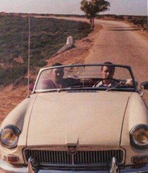 Uma foto mostra Reggie dirigindo um conversível sob a luz do sol