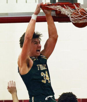 Compromisso de Beisebol do Texas Brody Bumila Para o centro de 6 pés-9 Bispo Feehan (Mass.) time de basquete masculino e rumo à Associação Atlética Interescolar de Massachusetts no domingo (MIAA) Jogo do título estadual da Divisão I