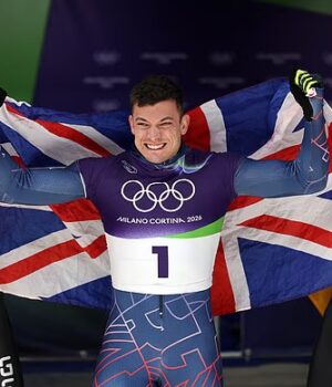 Matt Weston posa em seu esqueleto – o herói britânico da medalha de ouro nas Olimpíadas de Inverno