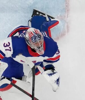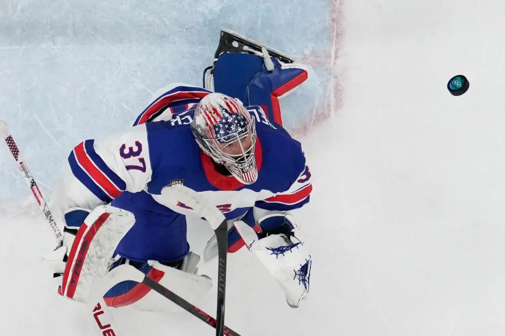 Connor Hellebuyck mostra porque é o goleiro titular dos EUA nas Olimpíadas