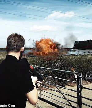 Antes de mostrar a explosão na tela, ele foi visto como alvo o painel e o pilão no clipe