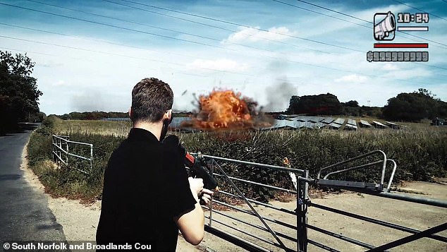No vídeo, o líder do conselho de South Norfolk, Daniel Elmar Stars, onde ele sonhava em soprar fazendas solares usando lançadores de foguetes