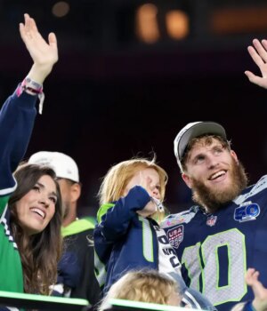 O recebedor de Seattle usou seu chapéu de campeão do Super Bowl, uma lembrança que ele ajudou a ganhar ao conseguir seis passes para 61 jardas na vitória dos Seahawks por 29-13 sobre o New England Patriots no Levi’s Stadium.