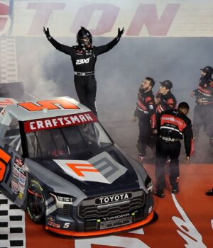 naquela hora, Ross Chastain Manteve a liderança com confiança e ficou mais de meio segundo à frente de Heim na bandeira branca. Mas o #5 rapidamente o atropelou, explodindo o Chevrolet #45 na última volta e na última curva.