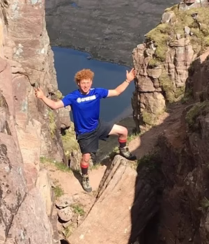 Em junho do ano passado, ele documentou uma viagem às Terras Altas da Escócia com amigos, escalando montanhas e saltando no Choppy Loch Ewe.