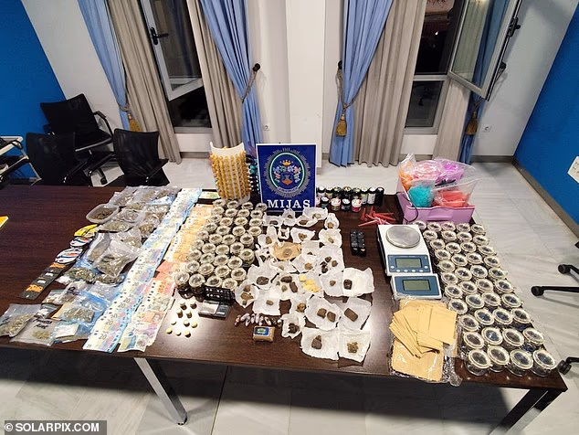Um comunicado divulgado na segunda-feira pela polícia local de Mijas, que faz parte da Riviera del Sol, disse: ‘A polícia local de Mijas prendeu um homem sob suspeita de crimes contra a saúde pública após uma operação nas instalações do centro comercial Las Terrazas em Riviera del Sol.