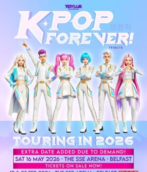 ‘Tocado em Belfast esta noite como parte de uma turnê mundial, e o conteúdo, design e coreografia foram criados para representar todo o gênero K-pop, apresentando músicas de BTS, Blackpink e Cutseye, bem como oito sucessos de Demon Hunters, incluindo ‘Golden’, ‘Takedown’ e ‘Soda Pop’.