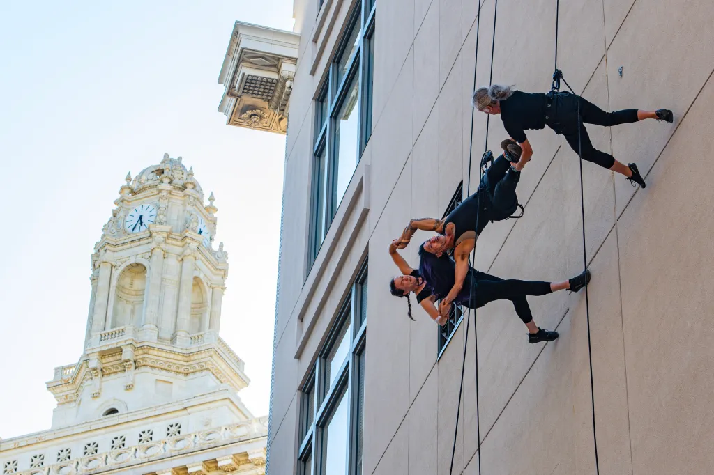 Mas tais acidentes são quase inéditos. Bandaloop possui um sistema de segurança robusto que Rudolph ajudou a estabelecer, incluindo vários níveis de sites e ferramentas de verificação tripla. “As pessoas dizem: ‘Você desafia a gravidade’. Eu digo: ‘Não, eu não. Tenho muito respeito e não vou tentar negá-lo.’