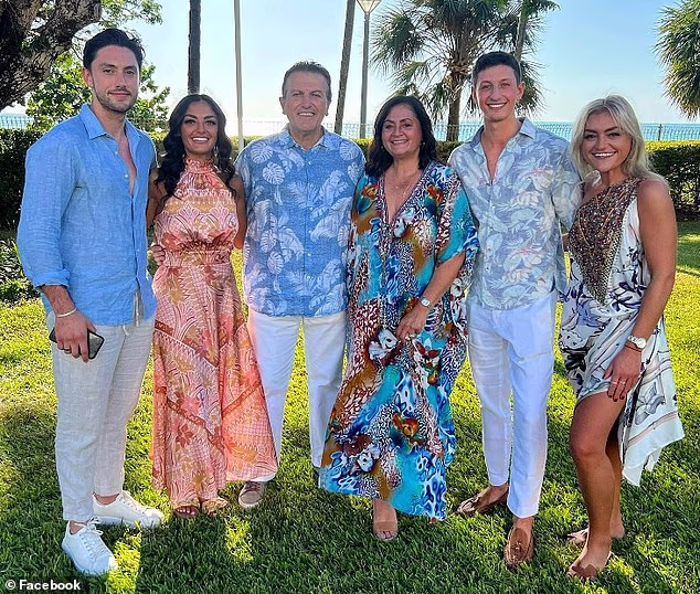 O magnata multimilionário dos restaurantes Bill Drakopoulos (terceiro à esquerda) fotografado com seu filho Daniel (à esquerda) e outros membros da família