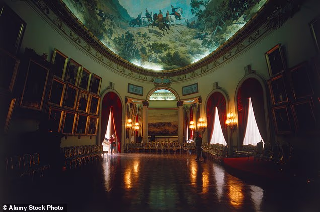 O luxuoso interior do Palácio Miraflores, em Caracas, onde viviam o presidente deposto da Venezuela, Nicolás Maduro, e sua família.
