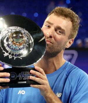 Derrotou o amador australiano Janic Sinner rumo ao prêmio de US$ 1 milhão em um emocionante Slam de um ponto