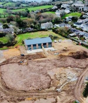 Fotos aéreas mostram a enorme conversão do novo celeiro na pequena vila da Cornualha