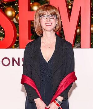Encontre a verdadeira Frieda McFadden. Os fãs acreditam que ela usa uma peruca para esconder os cachos quando faz aparições públicas em eventos, incluindo a exibição de The Housemaids em dezembro em Nova York, quando na vida real seu cabelo está muito mais arrumado.