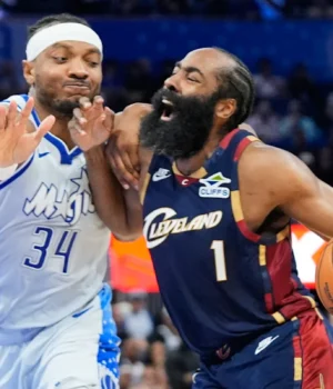 James Harden fez 30 pontos e oito assistências para o Cleveland. Donovan Mitchell somou 25 pontos, acertando uma cesta de 3 pontos que deixou os Cavaliers a dois pontos, depois que Orlando liderou por 13 no meio do quarto período.