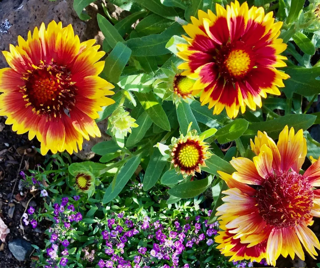 Perene: Artemísia, Nephophia, Peônia, Flor de Manta (Gailardia spp.), Heuchera, Margarida Shasta, Juncas, Flor de Macaco (Mimulus spp.), Catmint (Nepeta spp.), Yarrow (Achillea spp.), Columbine (Achillea spp.)
