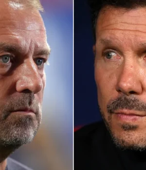 O técnico do Atlético de Madrid, Diego Simeone, expressou publicamente sua admiração pela inteligência tática e comprometimento do colega do Barcelona, ​​​​Hansi Flick.