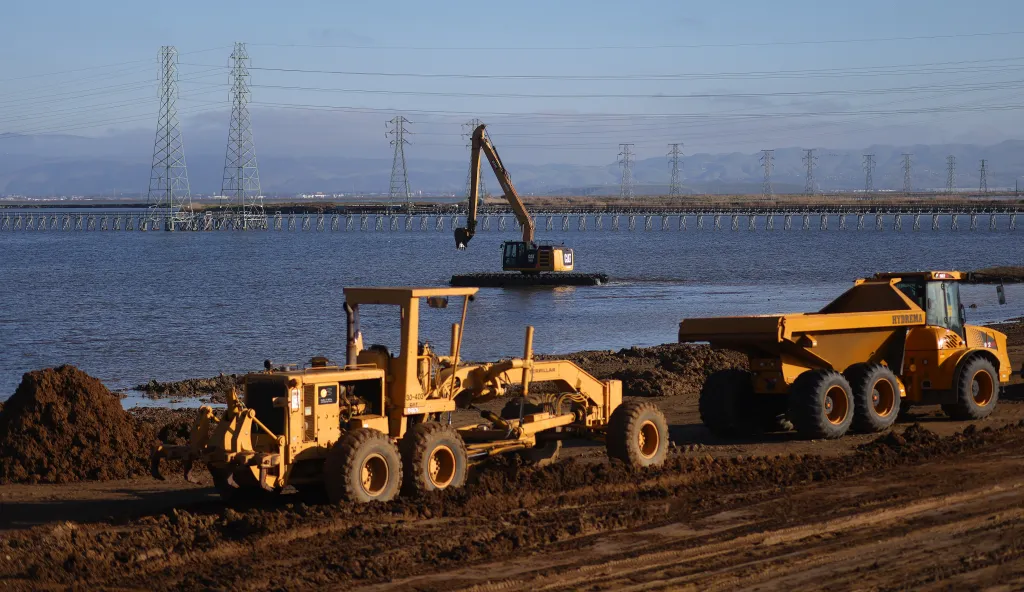 A bacia de inundação de Palo Alto, de 600 acres, fica a uma curta caminhada do Mountain View’s Pond A2W e Comportas motorizadas O mecanismo de controle do fluxo das marés do estuário da bacia está extinto há mais de cinco anos. A cidade de Palo Alto é responsável pela manutenção das comportas, mas está relutante em prosseguir com reparos dispendiosos. Muitas das mesmas espécies animais em dificuldades que se beneficiam da restauração das lagoas salgadas dependem do fluxo silencioso das marés que a comporta foi projetada para fornecer.