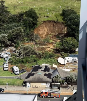 Um deslizamento de terra atingiu o Mount Maunganui Beachside Holiday Park às 9h30 de quinta-feira.
