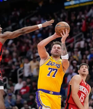 HOUSTON (AP) – Luka Doncic marcou 36 pontos para levar o Los Angeles Lakers à vitória por 100-92 sobre o Houston Rockets na noite de segunda-feira, na abertura de uma série de dois jogos entre os times que lutam pela posição nos playoffs da Conferência Oeste.