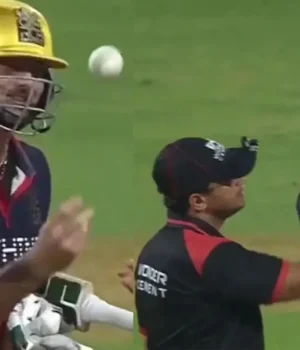 O incidente se desenrolou no 18º turno do RCB, quando David Hardik acertou Pandya para um seis brilhante no meio do postigo. O golpe foi tão forte que alterou o formato da bola, que também estava molhada, obrigando os árbitros a pedir uma substituição.