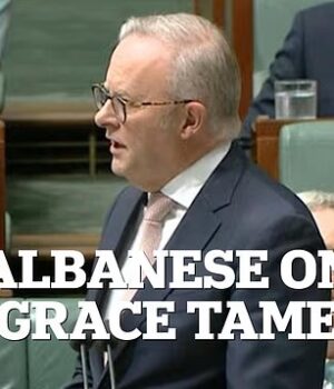 O primeiro-ministro Anthony Albanese evitou uma questão no parlamento sobre se condenaria publicamente a ex-australiana do ano, Grace Tam, por protestar contra a “globalização da Itifada”.