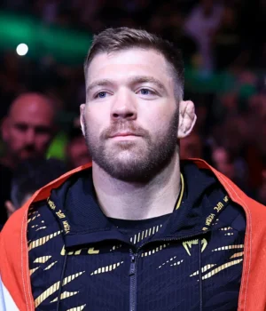 CHICAGO, ILLINOIS – 16 DE AGOSTO: Dricus du Plessis, da África do Sul, reage após sua derrota por decisão unânime para o russo Khamzat Chimayev na luta pelo título dos médios do UFC durante o evento UFC 319 no United Center em 16 de agosto de 2025 em Chicago, Illinois. (Foto de Ed Mulholland/Jufa LLC)