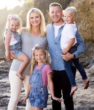 Depois que ele a pediu em casamento em 2012, o casal se casou um mês depois no Havaí e agora tem filhas, Olivia e Chloe, e um filho, James.