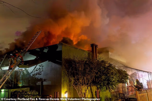 Foto: Elephant’s Delicatessen em Portland pegou fogo na terça-feira depois que as autoridades disseram que uma mulher acidentalmente colocou fogo no lixo perto da empresa. Como resultado, o fogo se espalhou para o telhado e para dentro do prédio