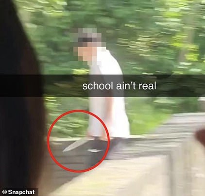 Alega-se que o filho da escola que tem faca está tentando esfaquear um garoto que trouxe um menino.