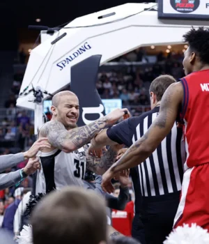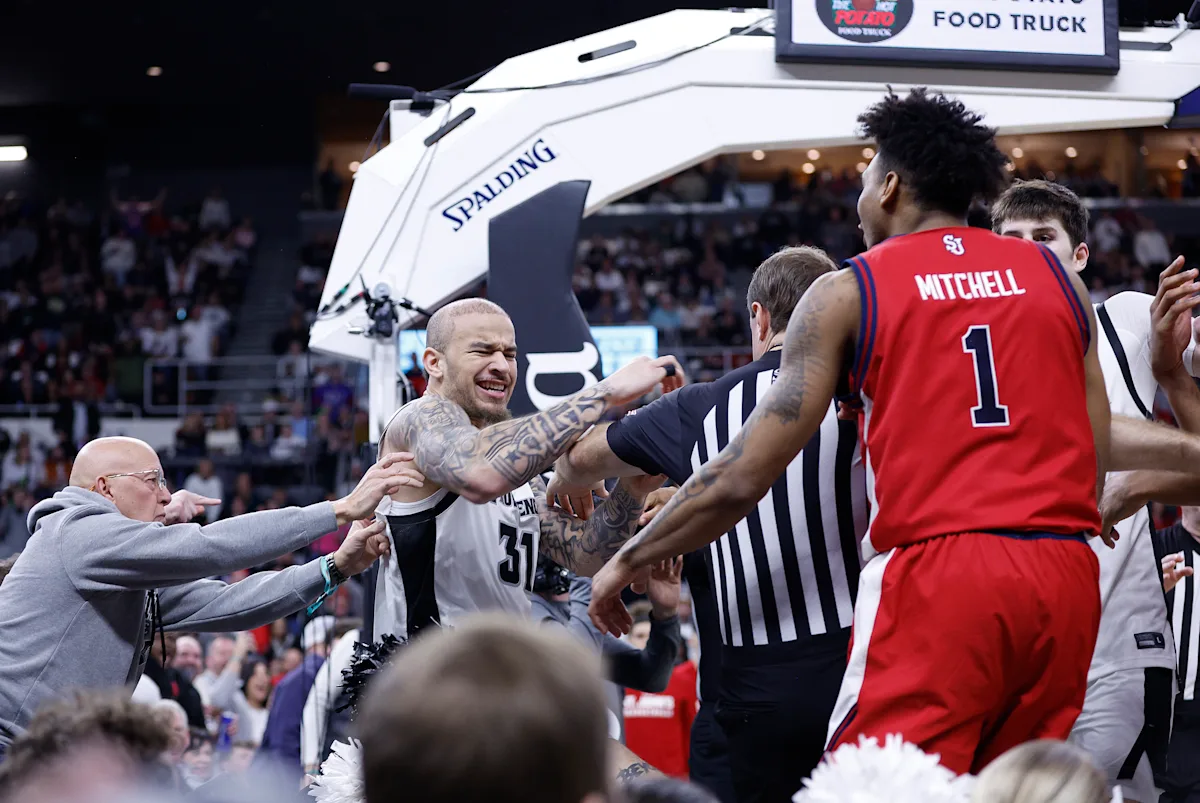 Powell sofreu uma segunda falta flagrante depois de perfurar Bryce Hopkins por trás, enquanto Hopkins tentava fazer uma bandeja no início do segundo tempo no Amica Mutual Pavilion, no sábado. Isso gerou uma grande briga que resultou em seis das sete expulsões do jogo. A certa altura, Powell até tentou dar um golpe no atacante do St. John’s, Dillion Mitchell, embora Mitchell tenha caído bem a tempo.