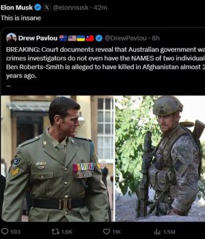 O chefe bilionário da Tesla e da SpaceX opinou sobre a história do soldado mais condecorado da Austrália sendo acusado de crimes de guerra pela segunda vez.