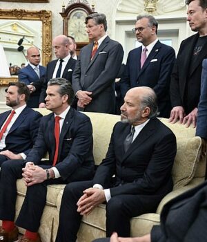 Vice -presidente dos EUA, JD Vans, vice -chefe de gabinete da Casa Branca, Stephen Miller, secretário de defesa dos EUA Pete Hegsheth, secretário de comércio dos EUA Howard Lutnik e o presidente dos EUA, Donald Trump, conhece o presidente da África do Sul Cyril Ramaphasa