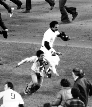 Em 18 de outubro de 1977, Reggie Jackson acertou três home runs no jogo 6 da World Series para levar o New York Yankees a uma vitória por 8–4 sobre o Los Angeles Dodgers e uma vitória por 4–2 na série; Seu sucesso no Fall Classic lhe rendeu o apelido de “Sr. Outubro”.