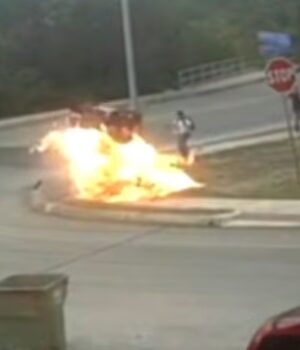 O motorista foi levado a um hospital próximo com queimaduras de segundo grau, disse o Gabinete do Xerife do Condado de Bexar.