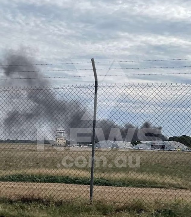 Um hangar pegou fogo depois que um pequeno avião caiu em um aeroporto no sul da Austrália