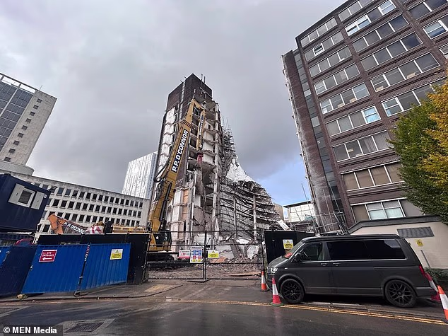 Um porta-voz do Greater Manchester Fire and Rescue disse: ‘Um carro de bombeiros do Manchester Central compareceu ao St Mary’s Parsonage pouco depois das 14h50 de hoje, depois que os andaimes de um prédio desabaram parcialmente.’