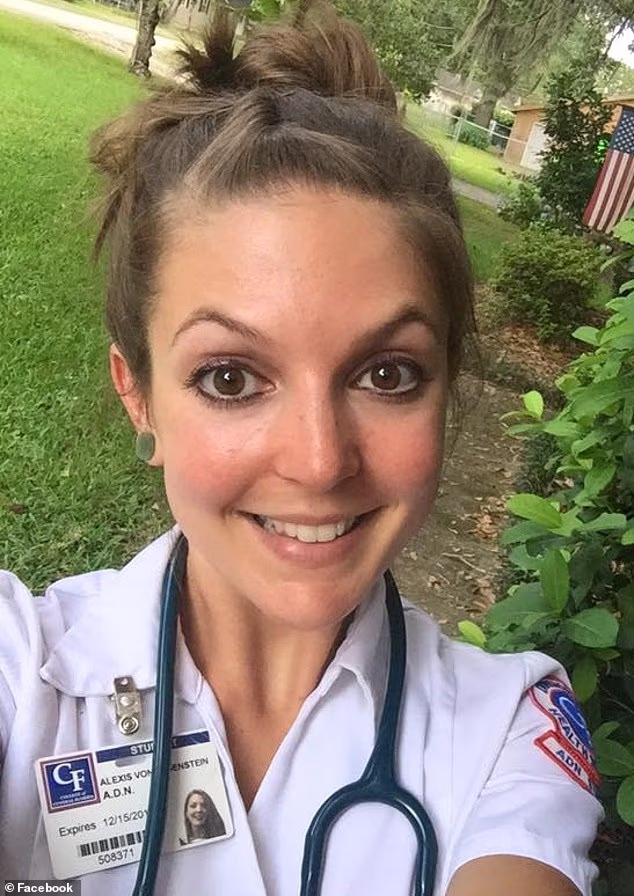 Alexis Von Yates, vista aqui, teve sua licença de enfermeira revogada pelas autoridades de saúde do Sunshine State no mês passado.