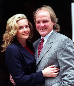 Terry Yorath com sua filha Gabby no dia de seu casamento em Logie Kirk, Escócia, em julho de 2001