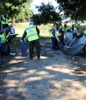 Ao longo do dia, os trabalhadores desmontaram tendas e limparam várias secções do parque, como parte de um esforço de 40 mil dólares para restaurar a drenagem e limpar a poluição, os detritos e a vegetação ao longo do Old Alameda Creek. A cidade deu aos campistas duas latas de plástico para seus pertences antes de jogar fora todo o resto.