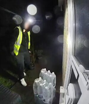 Um entregador foi pego entregando água de emergência na porta de Kent antes de tirar uma foto e retirá-la novamente.