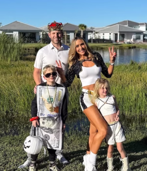 Eric Trump usou uma fantasia de Halloween de inspiração real para atacar os manifestantes do No Kings enquanto posava com a esposa Lara e seus filhos.