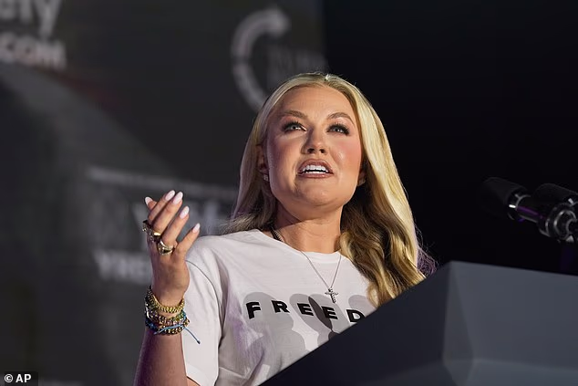 Erica Kirk fala durante o evento de turismo no campus “This is the Turning Point” na Universidade do Mississippi.