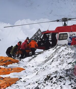 Primeiro, envolva turistas que não querem descer todo o caminho. As caminhadas podem levar até duas semanas a pé, então os guias pedem aos escaladores que finjam uma emergência médica para que um helicóptero possa chegar.