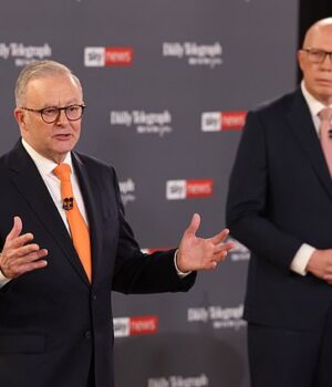 As pesquisas de opinião nunca têm certeza, mas os interiores políticos estão aumentando para o mercado como um indicador confiável dos resultados das eleições crescentes. (Ilustrado: Primeiro Ministro Anthony Albaniz, esquerda e líder da oposição Peter Don, à direita, nos primeiros líderes dos primeiros líderes na semana passada)