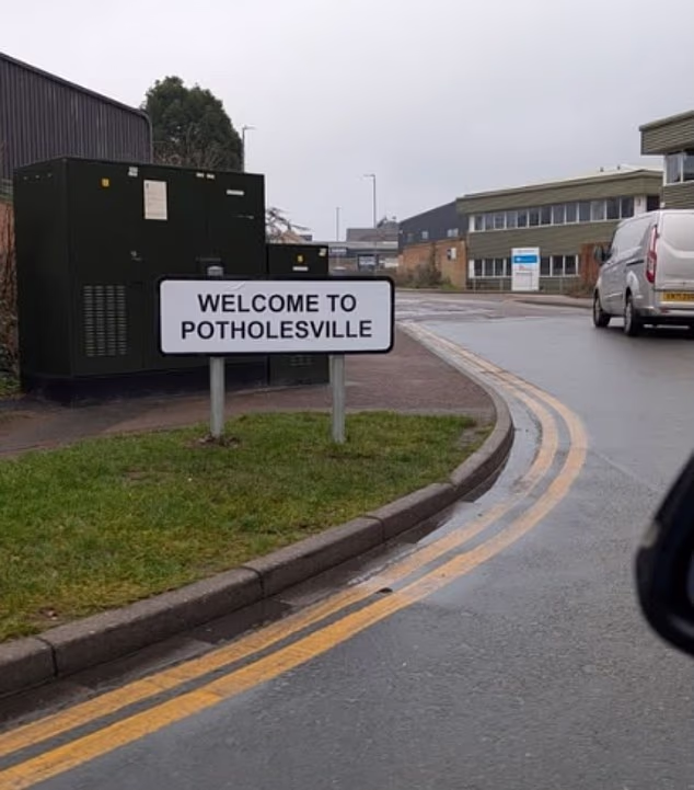 E em meio à crescente frustração, uma placa ‘Bem-vindo a Potholesville’ foi afixada no fim de semana.